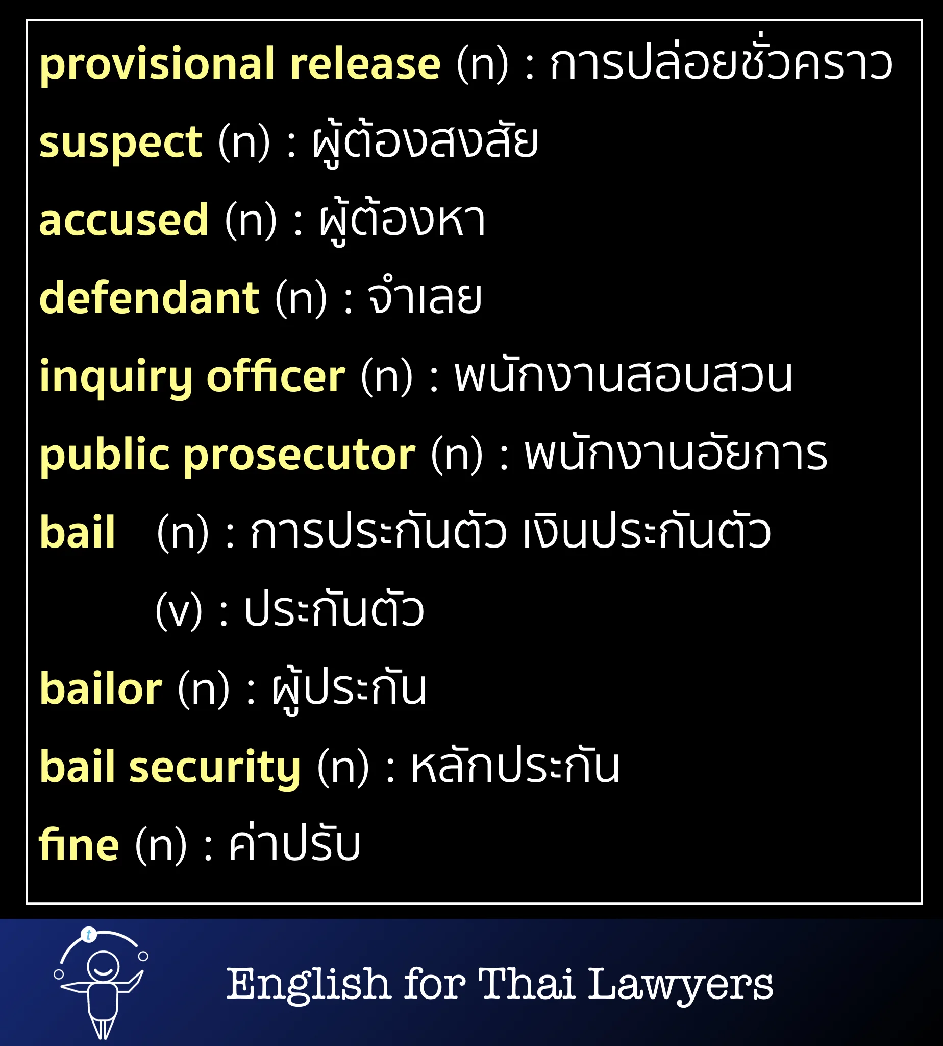 เห็นด้วยไหมครับว่าภาษาอังกฤษสำหรับกระบวนวิธีพิจารณาความอาญาเป็นความรู้ที่ควรมีพกติดกระเป๋าไว้ เพราะบทจะจำเป็นต้องใช้ขึ้นมาก็มักจะมาแบบไม่ทันตั้งตัวจริงๆ โดยเฉพาะเรื่องคุกเรื่องตารางแบบนี้